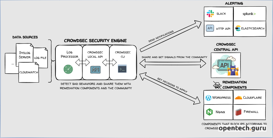 • Crowdsourcing: CrowdSec korzysta z informacji o atakach od wielu użytkowników, co pozwala na szybsze i skuteczniejsze blokowanie ataków.